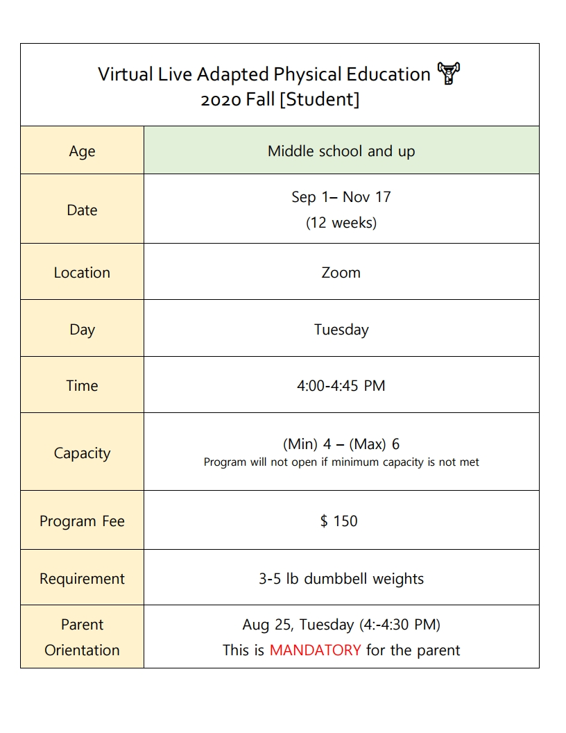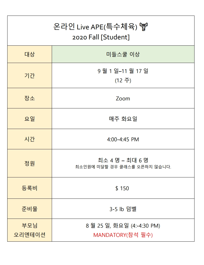 [Fall 2020 Virtual Program] 온라인 Live APE(특수체육)